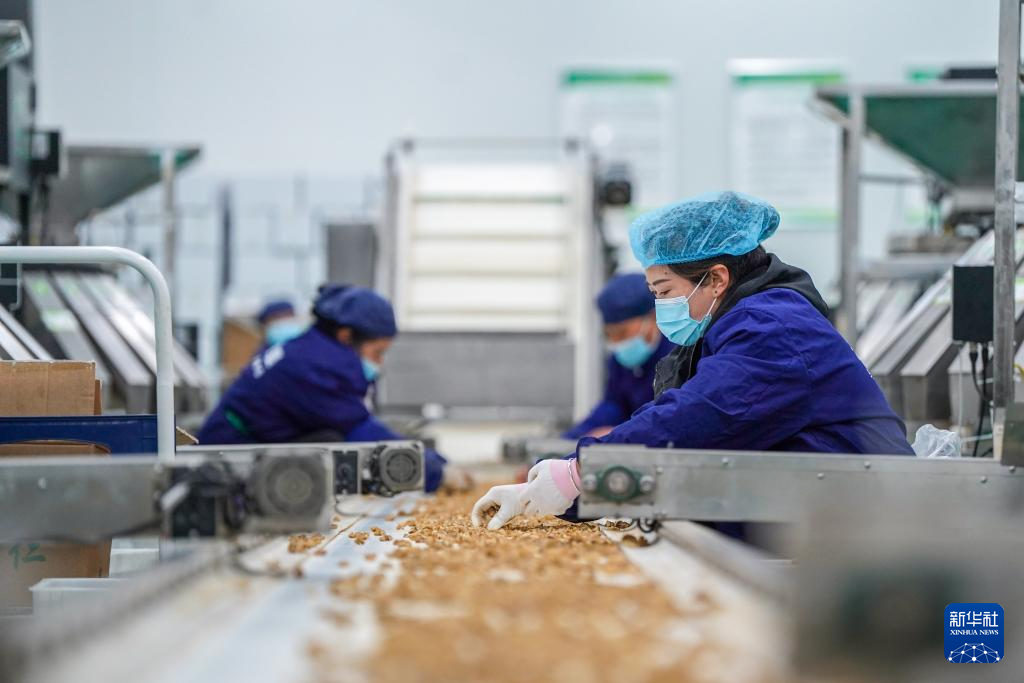 2026年1月8日,云南农垦大理核桃产业有限责任公司的工人在分拣核桃仁。新华社记者 彭奕凯 摄