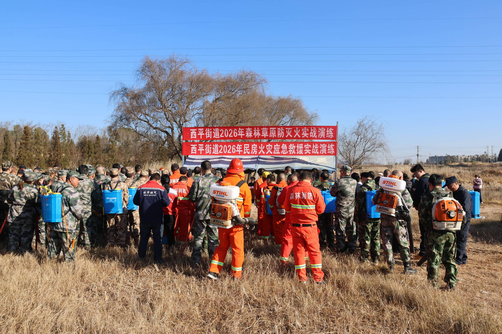 为切实增强公众消防安全意识、消除火灾隐患、避免和减少火灾危害,1月20日,沾益区西平街道组织开展2026年度森林草原火灾与民房火灾应急救援实战演练,全面检验与提升辖区应急联动与协同救援能力。