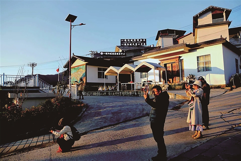 在阳坡村观看日出的游客。郭子雄摄/光明图片