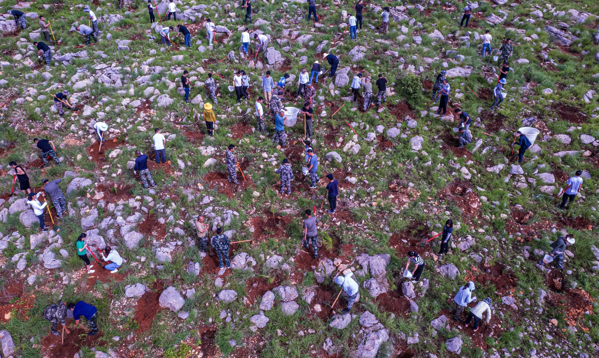 开远西山荒山植树 刘家有摄