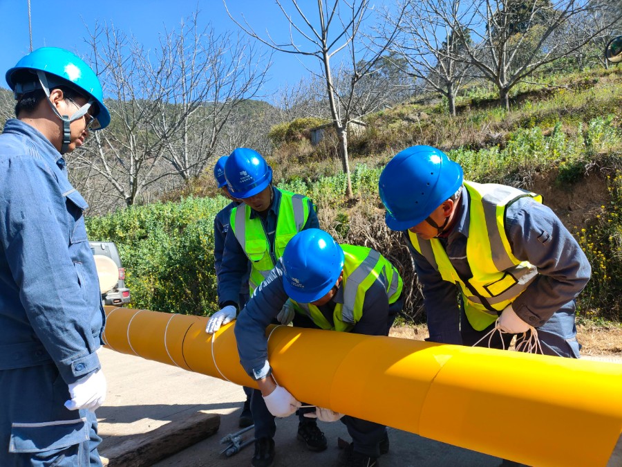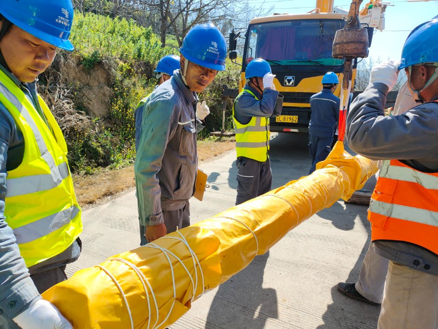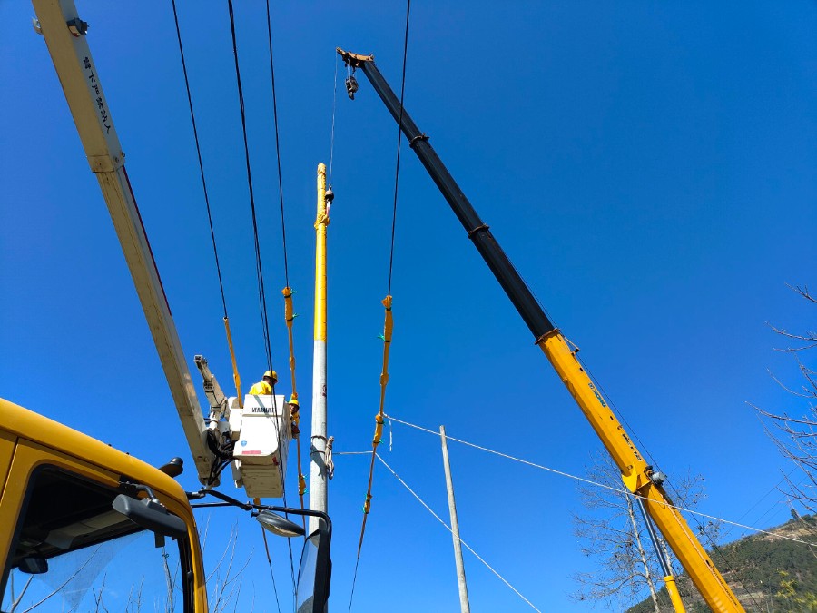 近日,南方电网云南大理南涧供电局带电作业班工作人员在35千伏无量变电站10千伏电站线5号杆至6号杆之间开展带电立杆作业,以作为新建的10千伏电站线下庄支线重过载治理台区的电源T接点,整个施工过程闭环管控、安全规范,最大限度保障沿线用电户全程“零感知”,减少对周边用户的用电干扰,切实做到施工、保电两不误。