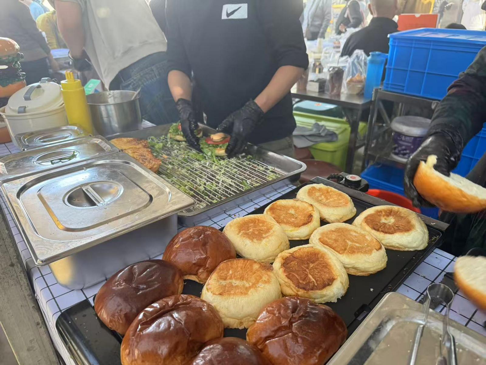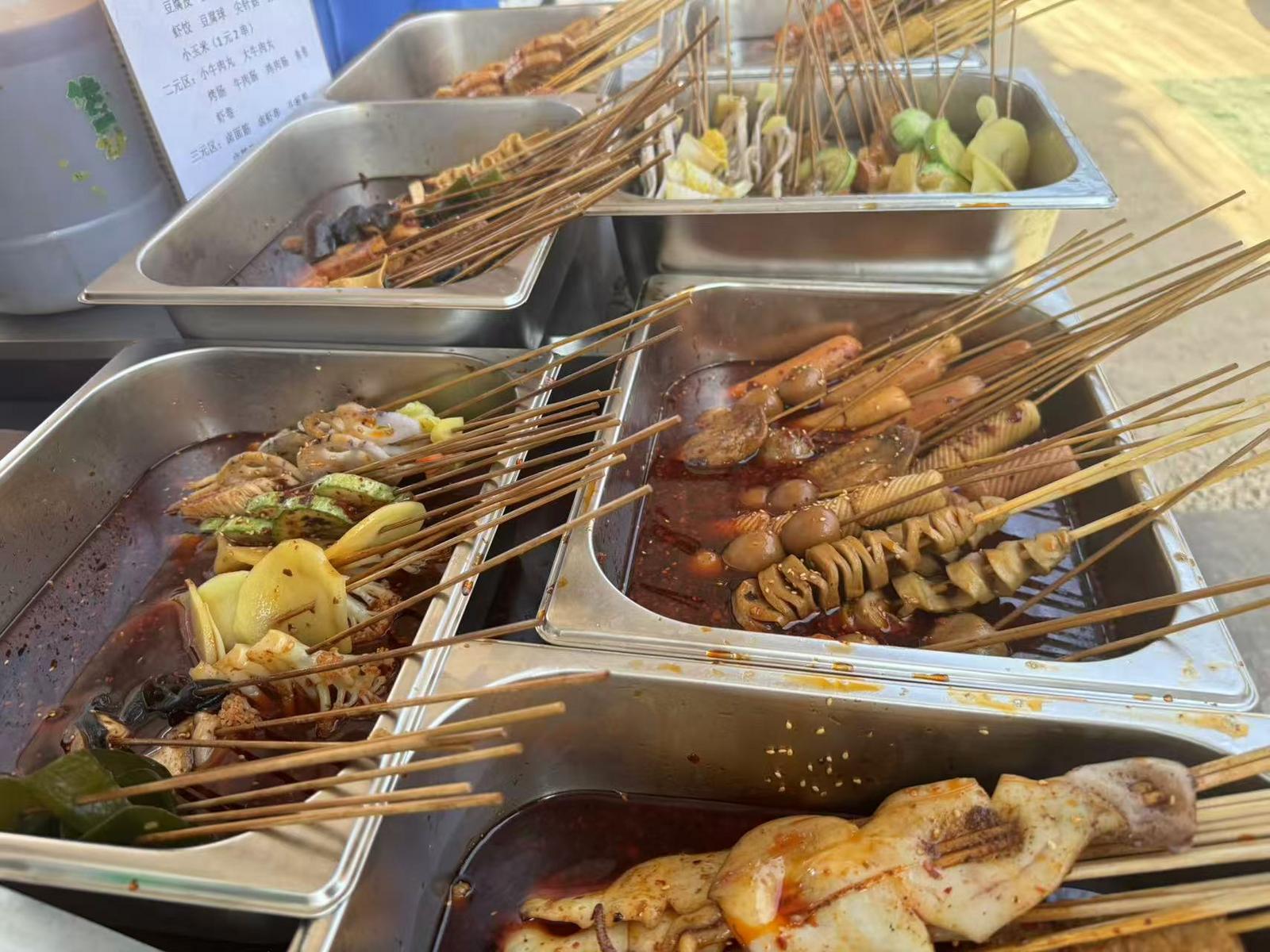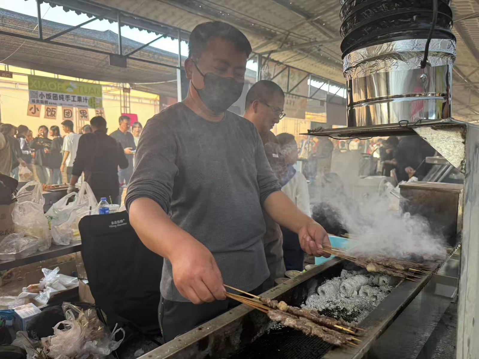 开街当日,美食街人头攒动、香气四溢,摊位前食客络绎不绝,热闹的市井氛围扑面而来。烤肉滋滋作响、叫花鸡香气扑鼻、各类糕点饮品精致爽口,空气中交织着各类美食的诱人香气。街区内,除了油香粑粑、牛羊肉等清真传统美味,也有傣味凉菜、小卷粉等地道民族小吃,更有现做汉堡、现烤羊排等网红潮流美食,品类丰富多元,满足不同年龄层食客的味蕾需求。