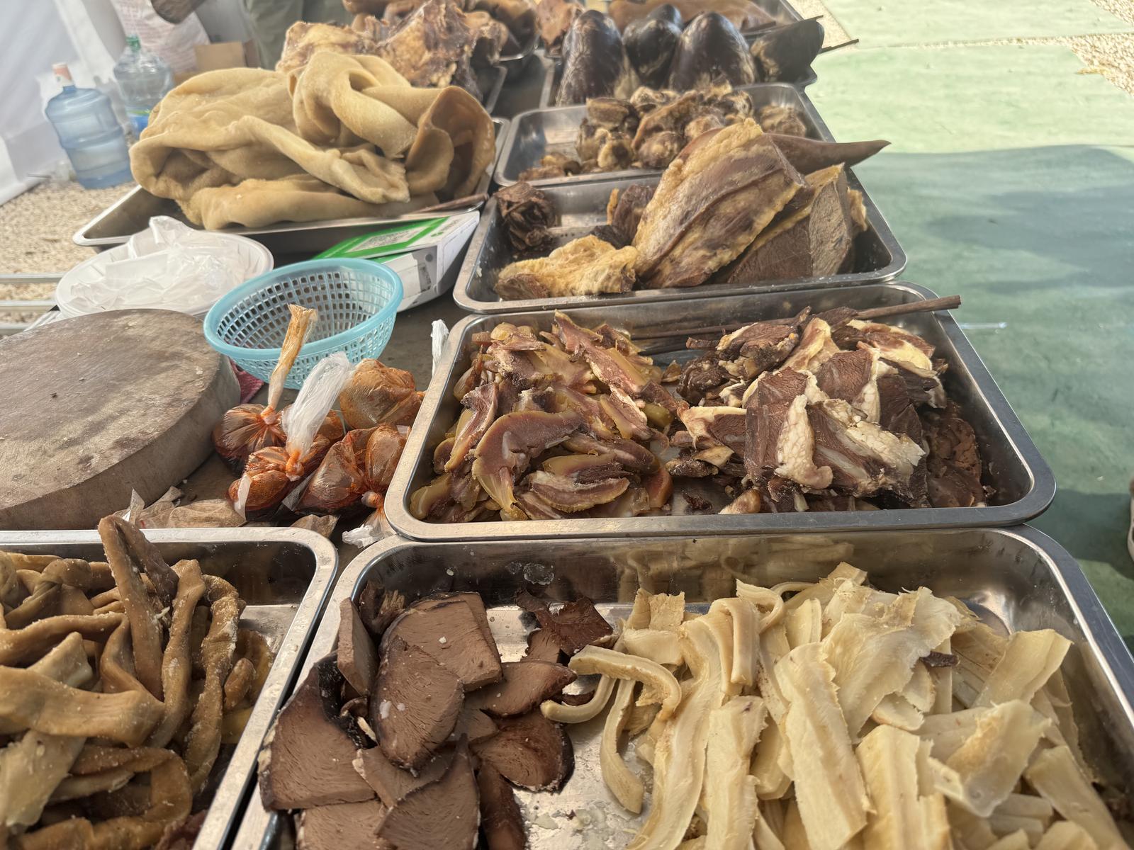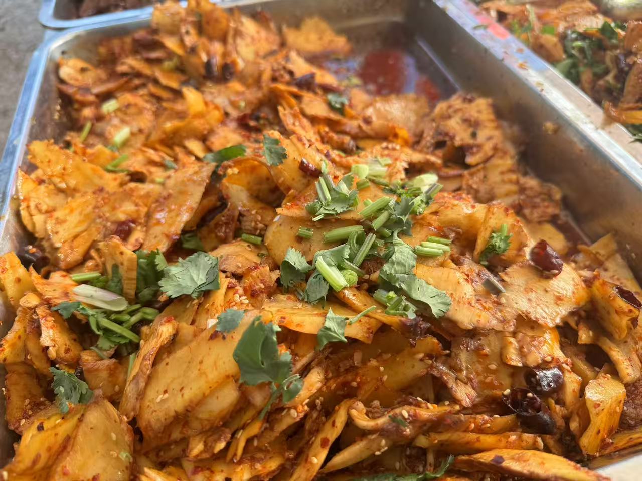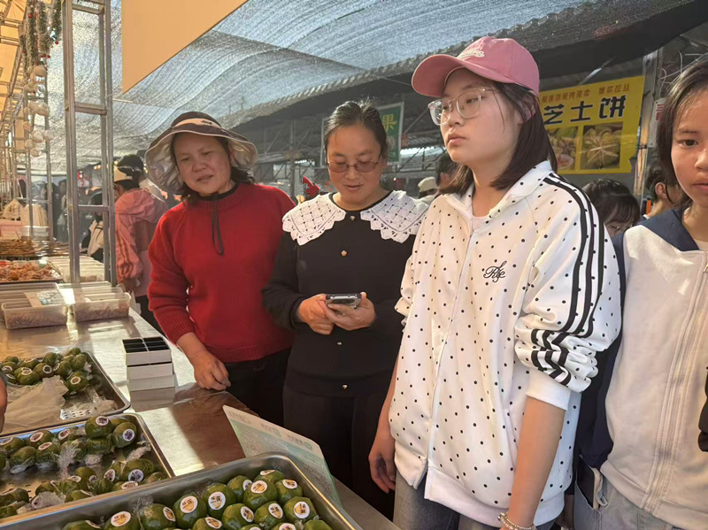 开街当日,美食街人头攒动、香气四溢,摊位前食客络绎不绝,热闹的市井氛围扑面而来。烤肉滋滋作响、叫花鸡香气扑鼻、各类糕点饮品精致爽口,空气中交织着各类美食的诱人香气。街区内,除了油香粑粑、牛羊肉等清真传统美味,也有傣味凉菜、小卷粉等地道民族小吃,更有现做汉堡、现烤羊排等网红潮流美食,品类丰富多元,满足不同年龄层食客的味蕾需求。