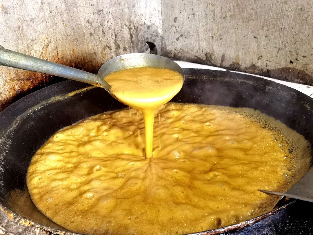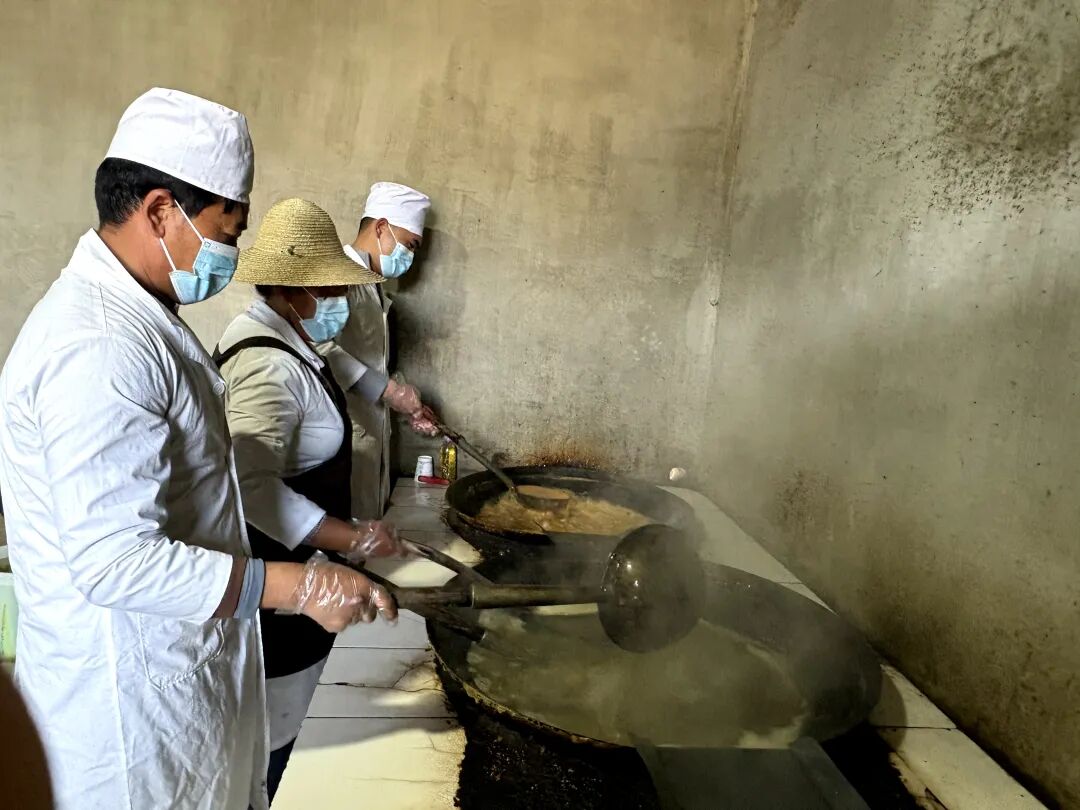 熬糖,坚守着百年不变的“三炼之法”。连体土灶上三口大锅依次排开,火候次第递进:文火去杂、中火浓缩、武火收浆。“看烟辨温,看糖色调火,祖辈传下的手艺,火候半分不能差。”杨济厚指尖轻触灶口,对温度变化了然于胸。