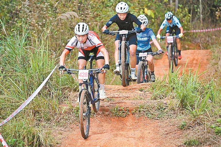 赛事首日共进行成年男子、女子越野赛,青年男子、女子越野赛,男子公开组A/B组越野赛、女子公开组越野赛等组别的争夺。运动员们穿梭在崎岖山道间,精准穿越跳台、飞包、木头桩等技术难点,陡坡攀爬时坚韧果敢,下坡冲刺间风驰电掣,尽情演绎山地自行车运动的速度与激情。