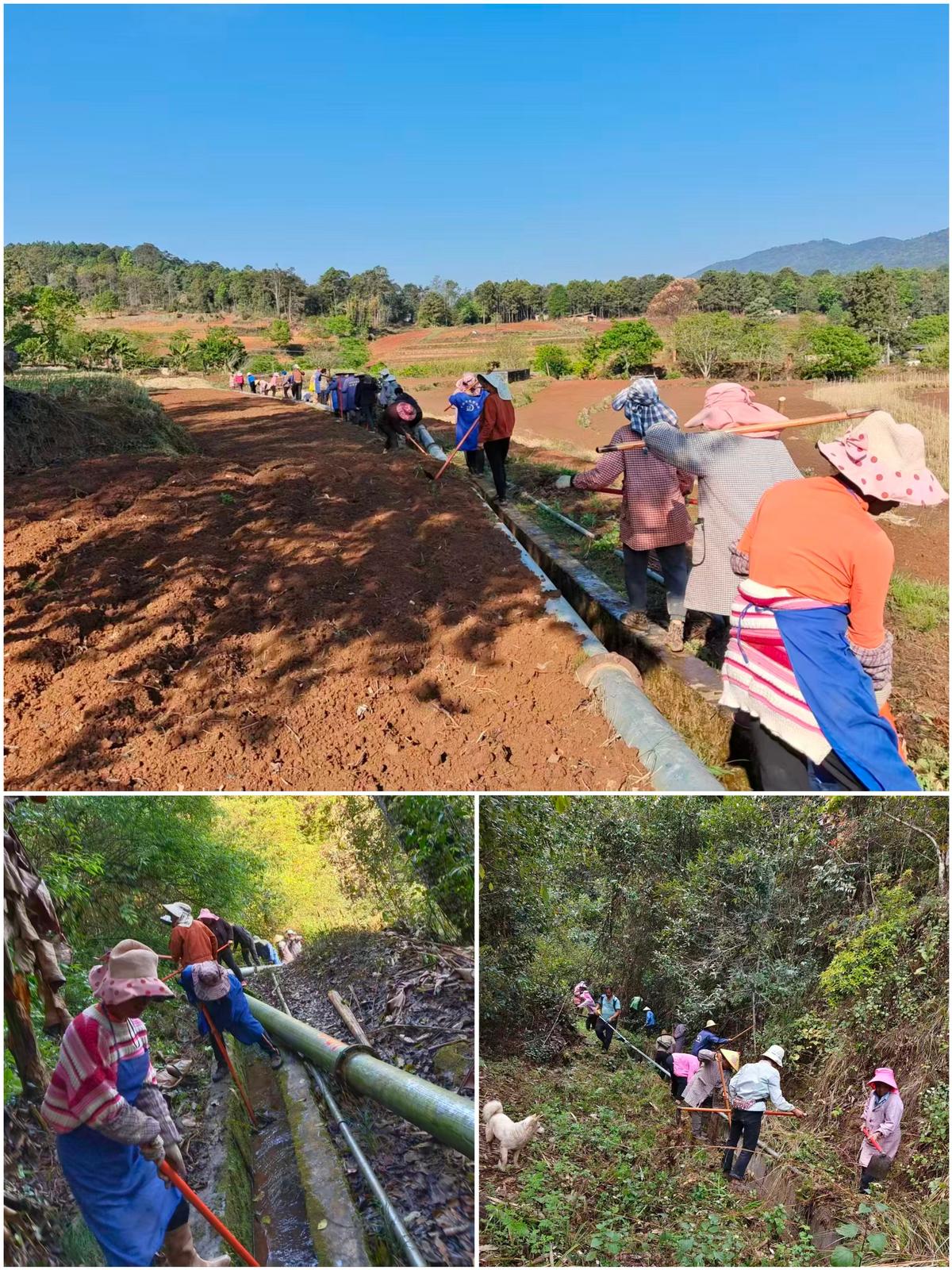 水利是烤烟稳产高产的基础保障。针对春季可能出现的干旱风险,平甸乡党委、政府坚持未雨绸缪、提前部署,将灌溉沟渠修复疏通作为抗旱保苗、确保顺利移栽的“先手棋”和关键支撑。各村“两委”迅速响应,党员干部带头冲锋,广泛发动群众投工投劳,大家手持铁锹、锄头等工具,对辖区内主干渠、支渠及田间毛渠开展全面清淤、疏浚和加固作业,重点清除沟内淤泥、杂草、垃圾及各类障碍物,确保水流畅通无阻。有效打通农田灌溉“最后一公里”,为烤烟移栽用水和后续生长提供了坚实可靠的水利保障,也在群众心中浇灌出“党群一心、无难不克”的坚定信念。